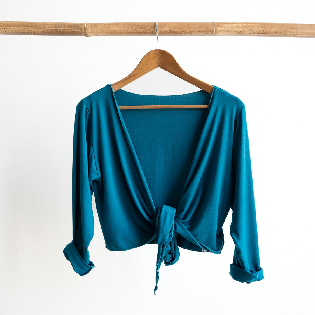 Our Ballet-style bamboo wrap-around cardi is the perfect cover-up when you want to add a long sleeve layer to your dress or favourite top.