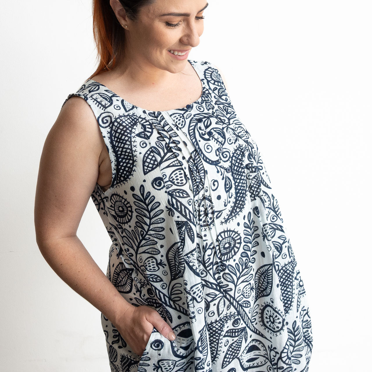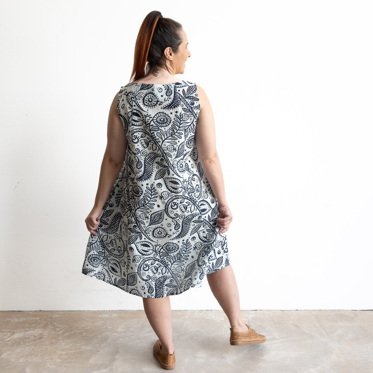 The Pintuck Smock Dress brings together light, breathable cotton, flowing shape and below-the-knee hemline creating a classic summer sundress. The relaxed A-line cut falls easily from the shoulders, with soft pintuck shaping pleats through the front bodice. Side seam pockets are sewn in, and the sleeveless design keeps it cool and layer friendly.