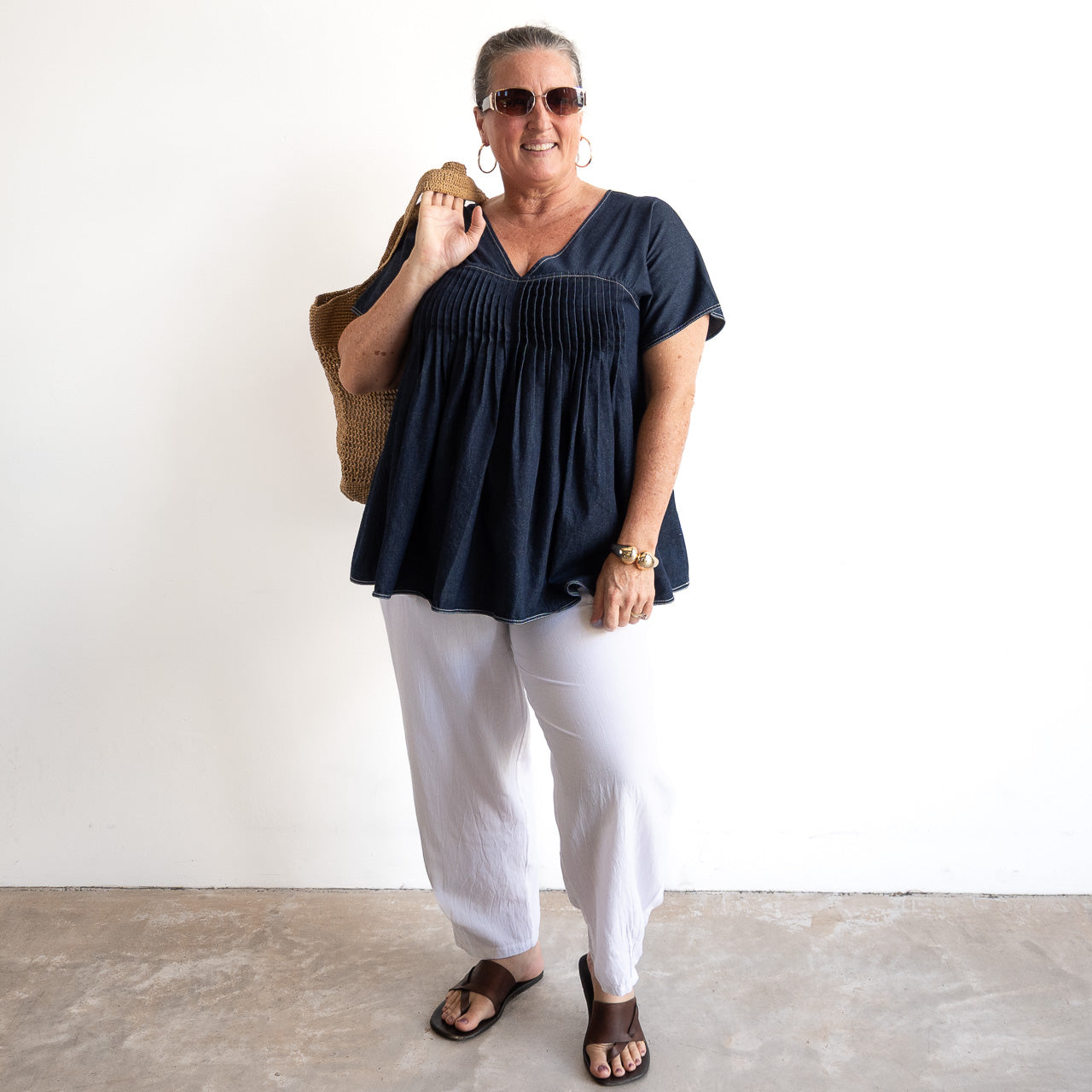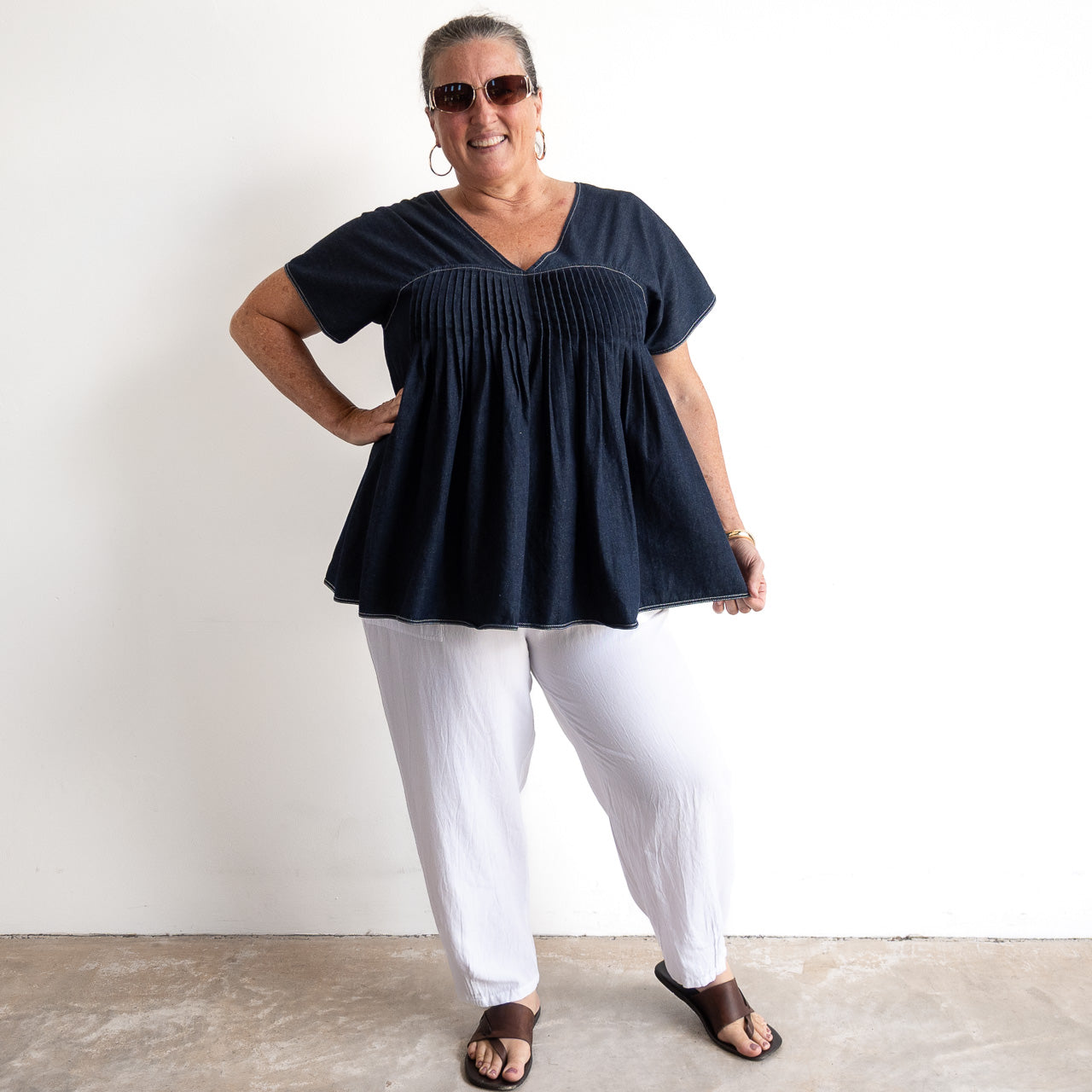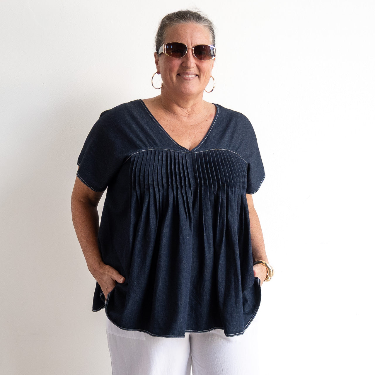 Pleat Shaped Top - Lightweight Denim
