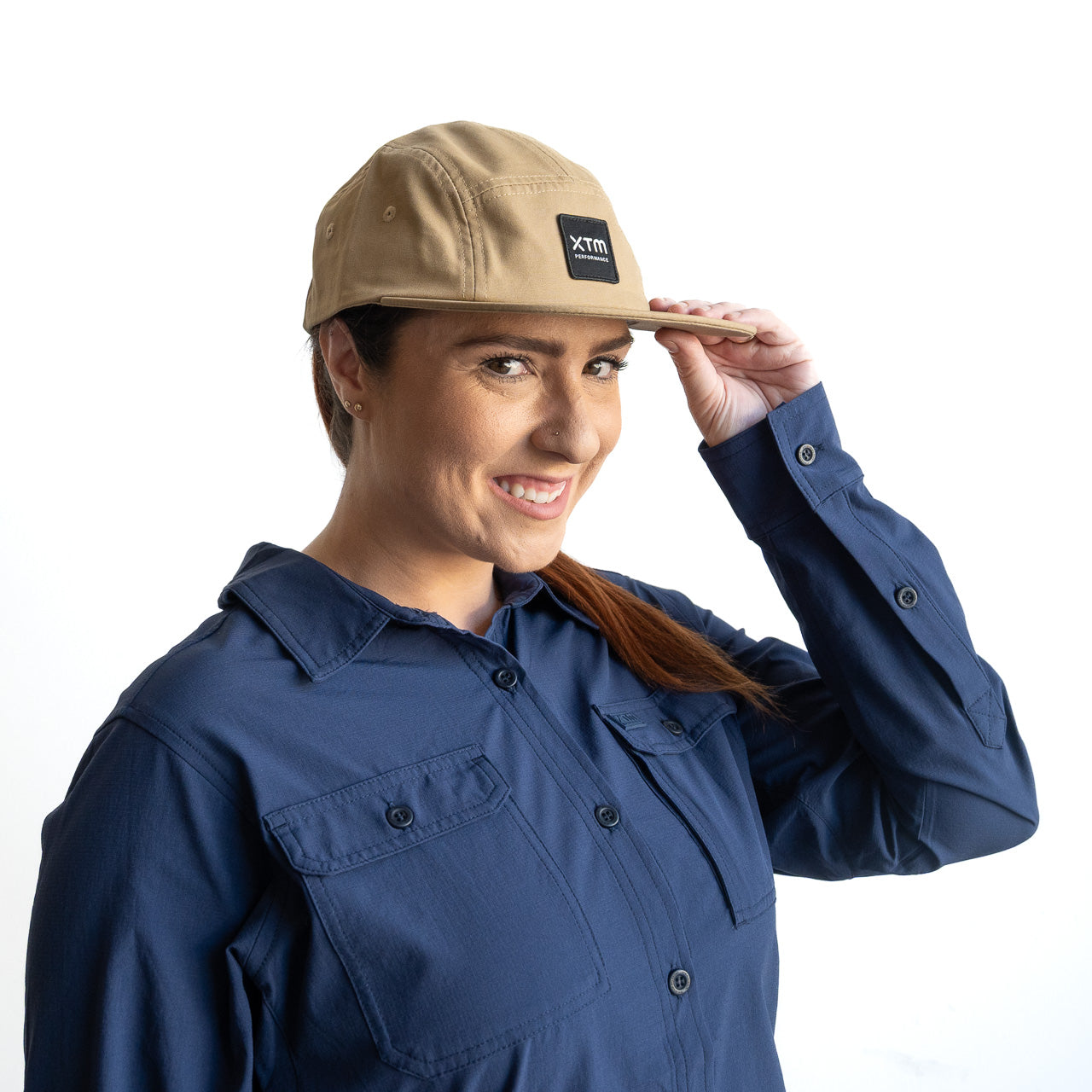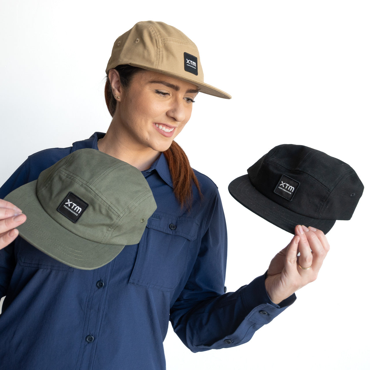 The 5-panel fit sits comfortably with room for a ponytail, and the back adjusts easily to suit. The peak comes flat but can be molded by hand to your preferred curve. Finished with eyelet ventilation and an XTM patch logo, it’s practical without fuss.