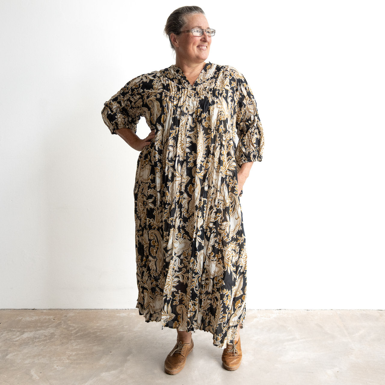 {"id":9645292683550,"title":"The Wanderer Tunic Dress - Paisley Nouveau","handle":"the-wanderer-tunic-dress-paisley-nouveau","description":"\u003cp\u003eThe Wanderer Tunic Dress is your perfect companion for adventurous holidays in exotic destinations or relaxed comfy chic in your own little nook. Crafted from 100% cotton, this lightweight yet voluminous dress is gentle on sensitive skin and ideal for keeping your cool in warm climates. The twist-and-pack crinkle cotton fabric ensures easy packing – simply twist, pack, and go!\u003c\/p\u003e\n\u003cp\u003eThe soft V-neck adds a touch of sophistication, while the pintuck pleat front yoke provides subtle shaping and texture. The three-quarter length sleeves with gathered elastic cuffs are just the cover you need while the loose, flowing silhouette and mid-calf length give a relaxed, bohemian feel to this easy style cotton midi dress.\u003c\/p\u003e\n\u003cp\u003e\u003cstrong\u003eFabric:\u003c\/strong\u003e 100% lightweight cotton.\u003cbr\u003e\u003cstrong\u003eFit:\u003c\/strong\u003e Free-size design fitting a bust up to 140 cm or about a size 24. The shoulder seam to bottom hemline measures 130cm in length.\u003cbr\u003e\u003cstrong\u003eStyling Suggestions:\u003c\/strong\u003e Slip-ons or heels, boots or barefoot! Pair with a soft scarf and classic denim jacket or simply your favourite beads.\u003cbr\u003e\u003cstrong\u003ePockets?\u003c\/strong\u003e YES!\u003c\/p\u003e\n\u003cp\u003eCare Instructions: Gentle machine wash in cold water. Lightweight cotton will dry quickly on the line or in a cool dryer. Once fully dry, twist and knot the dress to maintain the crinkle texture. No ironing at all...ever!\u003c\/p\u003e","published_at":"2024-12-19T21:28:20+10:00","created_at":"2024-11-29T14:06:12+10:00","vendor":"KOBOMO OSR","type":"Women's Dresses","tags":["Category_Dresses","Colour_Black","Colour_Dark","Colour_Multicolour","Colour_Natural","Colour_White","Colour_Yellow","Fabric_Cotton","Features_Breathable Fabric","Features_Ethically Produced","Features_Handmade","Features_Lightweight","Features_Limited Edition","Features_Machine Wash","Features_Non-Iron","Features_Pockets","Features_Quick Dry","Features_Twist'n'pack","Fit_Curve","Fit_Oversized","Fit_Plus Size","Fit_Relaxed","Fit_Tall","flexify","Length_Below-the-knee","Length_Longer","Length_Maxi","Length_Midi","Neckline_V Neck","Occasion_Beach","Occasion_Brunch","Occasion_Caravanning","Occasion_Carry-on","Occasion_Casual","Occasion_Cruise","Occasion_Maternity","Occasion_Party","Occasion_Resort","Occasion_Travel","Occasion_Weekend","Occasion_Work","plus size","plussize","Price_$50 to $100","Print_Artistic","Print_Paisley","Print_Retro","Print_Textured","Print_Traditional","Season_Autumn\/Winter","Season_Spring\/Summer","Sleeve_3\/4 Sleeve","Sleeve_Elbow Length","spo-cs-disabled","spo-default","spo-disabled","spo-notify-me-disabled","Spring\/Summer 25\/26","studio selection","Style_Kaftan","Style_Tunic"],"price":7800,"price_min":7800,"price_max":7800,"available":true,"price_varies":false,"compare_at_price":null,"compare_at_price_min":0,"compare_at_price_max":0,"compare_at_price_varies":false,"variants":[{"id":49385921544478,"title":"Default Title","option1":"Default Title","option2":null,"option3":null,"sku":"121424","requires_shipping":true,"taxable":true,"featured_image":null,"available":true,"name":"The Wanderer Tunic Dress - Paisley Nouveau","public_title":null,"options":["Default Title"],"price":7800,"weight":235,"compare_at_price":null,"inventory_quantity":30,"inventory_management":"shopify","inventory_policy":"deny","barcode":null,"requires_selling_plan":false,"selling_plan_allocations":[]}],"images":["\/\/kobomo.com.au\/cdn\/shop\/files\/Wanderer_Cotton_Tunic_Midi_Dress_Paisley_Nouveau-3.jpg?v=1765273929","\/\/kobomo.com.au\/cdn\/shop\/files\/Wanderer_Cotton_Tunic_Midi_Dress_Paisley_Nouveau-2.jpg?v=1765273929","\/\/kobomo.com.au\/cdn\/shop\/files\/Wanderer_Cotton_Tunic_Midi_Dress_Paisley_Nouveau-9.jpg?v=1765273929","\/\/kobomo.com.au\/cdn\/shop\/files\/Wanderer_Cotton_Tunic_Midi_Dress_Paisley_Nouveau-6.jpg?v=1765273929","\/\/kobomo.com.au\/cdn\/shop\/files\/The_Wanderer_Tunic_Dress_Nouveau_Paisley.png?v=1765273929","\/\/kobomo.com.au\/cdn\/shop\/files\/Wanderer_Cotton_Tunic_Midi_Dress_Paisley_Nouveau-7.jpg?v=1765273929","\/\/kobomo.com.au\/cdn\/shop\/files\/Wanderer_Cotton_Tunic_Midi_Dress_Paisley_Nouveau-8.jpg?v=1765273929"],"featured_image":"\/\/kobomo.com.au\/cdn\/shop\/files\/Wanderer_Cotton_Tunic_Midi_Dress_Paisley_Nouveau-3.jpg?v=1765273929","options":["Title"],"media":[{"alt":null,"id":53840731308318,"position":1,"preview_image":{"aspect_ratio":1.0,"height":1280,"width":1280,"src":"\/\/kobomo.com.au\/cdn\/shop\/files\/Wanderer_Cotton_Tunic_Midi_Dress_Paisley_Nouveau-3.jpg?v=1765273929"},"aspect_ratio":1.0,"height":1280,"media_type":"image","src":"\/\/kobomo.com.au\/cdn\/shop\/files\/Wanderer_Cotton_Tunic_Midi_Dress_Paisley_Nouveau-3.jpg?v=1765273929","width":1280},{"alt":null,"id":53840731341086,"position":2,"preview_image":{"aspect_ratio":1.0,"height":1280,"width":1280,"src":"\/\/kobomo.com.au\/cdn\/shop\/files\/Wanderer_Cotton_Tunic_Midi_Dress_Paisley_Nouveau-2.jpg?v=1765273929"},"aspect_ratio":1.0,"height":1280,"media_type":"image","src":"\/\/kobomo.com.au\/cdn\/shop\/files\/Wanderer_Cotton_Tunic_Midi_Dress_Paisley_Nouveau-2.jpg?v=1765273929","width":1280},{"alt":null,"id":53840731373854,"position":3,"preview_image":{"aspect_ratio":1.0,"height":1280,"width":1280,"src":"\/\/kobomo.com.au\/cdn\/shop\/files\/Wanderer_Cotton_Tunic_Midi_Dress_Paisley_Nouveau-9.jpg?v=1765273929"},"aspect_ratio":1.0,"height":1280,"media_type":"image","src":"\/\/kobomo.com.au\/cdn\/shop\/files\/Wanderer_Cotton_Tunic_Midi_Dress_Paisley_Nouveau-9.jpg?v=1765273929","width":1280},{"alt":null,"id":53840731439390,"position":4,"preview_image":{"aspect_ratio":1.0,"height":1280,"width":1280,"src":"\/\/kobomo.com.au\/cdn\/shop\/files\/Wanderer_Cotton_Tunic_Midi_Dress_Paisley_Nouveau-6.jpg?v=176527392